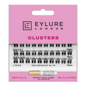 Build a bold, customizable lash look with our Voluminous No.10 Clusters. Designed for both above and under-lash application, these full-bodied clusters deliver striking volume and length. Easy to apply and comfortable to wear, they let you achieve a dramatic transformation with ease. Available in 10mm, 12mm, and 14mm lengths, each pack includes 30 clusters for multiple wears and easy customization. Handmade and reusable, every lash pack contains up to 5 applications and comes with our latex free lash glue that is guaranteed to last up to 18 hours.