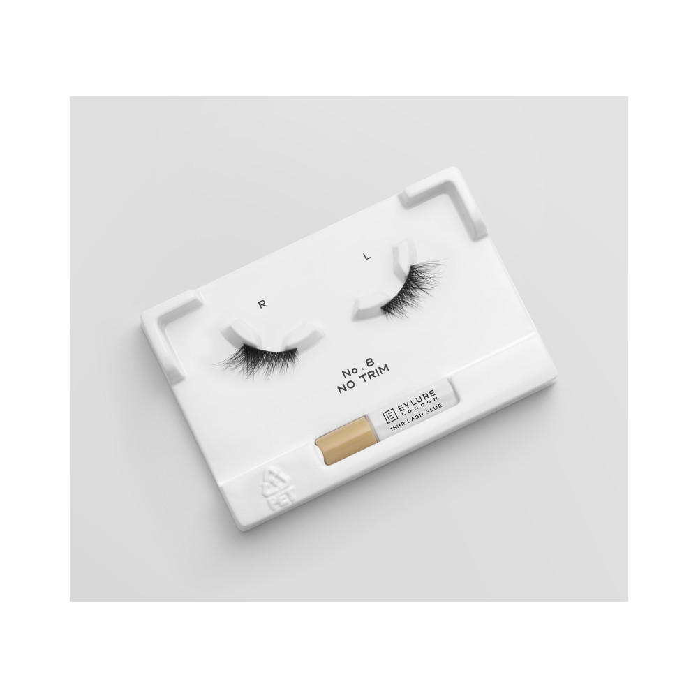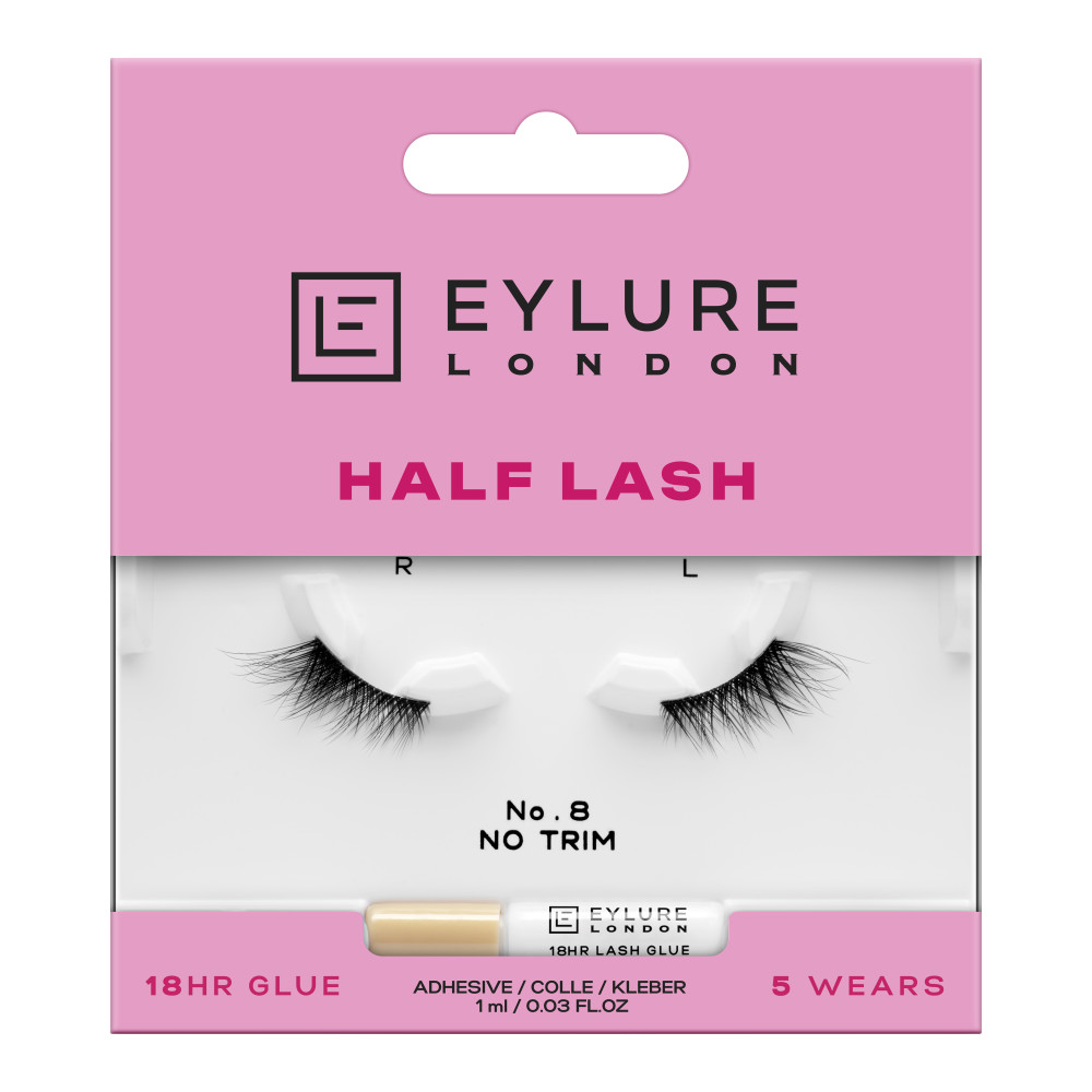 "Half the Lash, Double the Wow. Elevate your look with ease using our perfectly sized half lashes, designed to add just the right amount of volume and length for a natural yet striking finish. Perfectly sized, they require no trimming - just apply and go! Eylure No.8 features a fluffy, graduated wing that adds volume and lift to create the ultimate cat-eye effect. Reusable for up to 5 wears, every lash pack includes our latex-free lash glue, offering a secure hold that lasts up to 18 hours. Whether you're dressing up or keeping it casual, these half lashes deliver double the impact with half the effort."