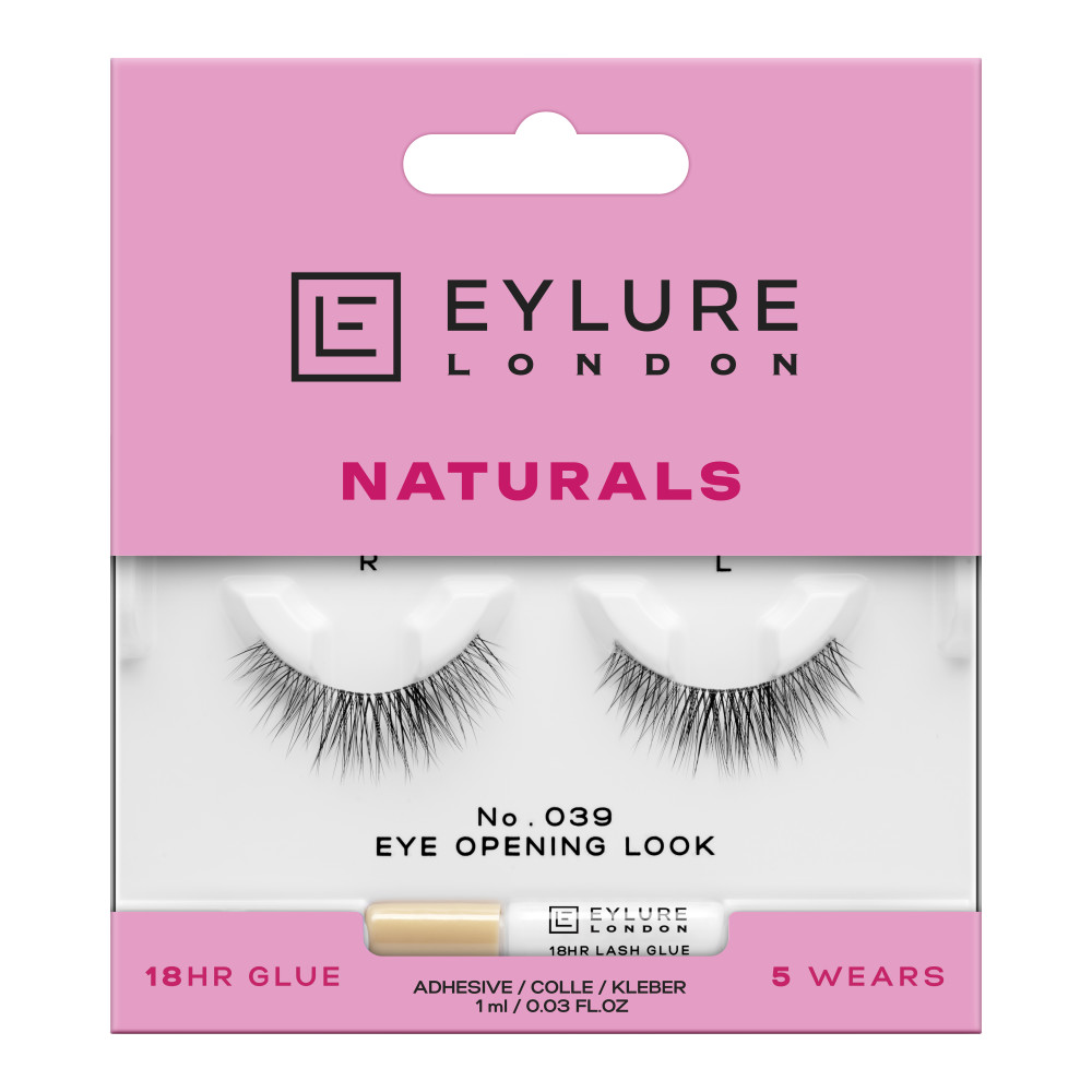 "The Naturals No.039 lash is a soft, wispy style that enhances your natural lashes with subtle volume and lift. With all the length focused at the center, it’s designed to open up the eyes for a beautifully rounded, lifted effect. Handmade and reusable for up to 5 wears, each lash pack comes with our latex-free lash glue for a secure hold that lasts up to 18 hours."
