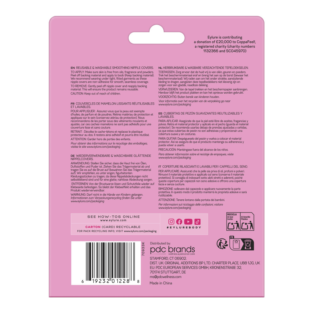 Achieve a flawless finish with Eylure’s Smoothing Nipple Covers – your go-to solution for seamless, discreet coverage under tight-fitting clothing. Designed with grippy, non-adhesive backing and super thin edges, they offer all-day comfort without compromising on invisibility. Ideal for tight, fitted garments – smooth and seamless with no sticky residue Reusable & waterproof – enjoy over 10 wears per pair Effortless to apply & remove – simply press onto clean, dry skin and reapply backing after use Neutral tone – blends easily with your natural skin tone These washable, smoothing nipple covers deliver dependable coverage that stays in place all day.